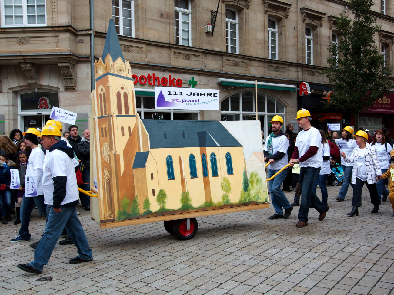 Damit Fürth und die ganze Welt ganz sicher mitbekommen, dass unsere Paulskirche 125 Jahre alt wird, bocken wir die Kirch‘ auf und nehmen sie mit zum Kärwaumzug! Unter dem Motto „Viel Glück und viel Segen…“ zeigen wir aber nicht nur unsere Modellkirche, sondern die wahren Schätze der Gemeinde – die Menschen. Wir feiern Geburtstag auf Fürths Straßen, natürlich mit ein paar Überraschungen. Also alle raus zum zujubeln, vor den Fernseher oder den Livestream!